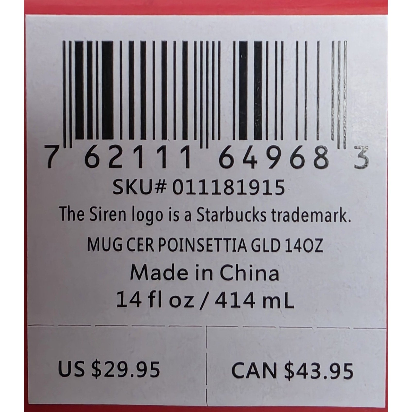 The Starbucks GOLD Poinsettia Mug Cup is a limited edition Christmas collectible for 2025. This medium-sized ceramic and porcelain mug features a festive poinsettia design in gold, perfect for enjoying hot or cold beverages. With a capacity of 14 oz, this round mug stands at 3.5 inches tall and 3.75 inches in diameter, making it a stylish and practical addition to any kitchen or home decor. The mug comes with its original box and is a must-have for Starbucks fans and collectors alike.